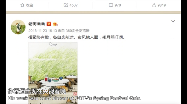 老树,本名刘树勇,当代艺术领域的跨界探索者。1962 年生于山东临朐,1979 年考入南开大学中文系,受叶嘉莹先生教导,同时师从梁崎、霍春阳等名家习画。1983 年毕业后,为接触优质艺术资源,他选择到中央财经学院任教,投身视觉语言研究,还涉足电影批评。? 迫于生计,老树曾暂别绘画,参与书籍装帧、室内装修等工作。上世纪 90 年代中期,他转向摄影领域,提出 “观念摄影” 概念,成为知名批评家与策展人。2007 年父亲重病,苦闷中的他重拾画笔,以 “老树画画” 开启艺术新生涯。 老树的作品风格独树一帜。画面常出现身着民国长衫、面目模糊的悠然男子,搭配闲花野草、山水楼台。他以简洁水墨勾勒,大量留白营造空灵意境,线条苍劲灵动?;鞫辔薮程饪?,少数配六言白话诗文,诙谐中暗藏哲理。2011 年作品在微博走红,后出版多本画集,在国内外举办展览,登上央视春晚,成为当代画坛独特风景。从教师、摄影批评家到画家,他的多元经历为艺术创作注入深厚底蕴。