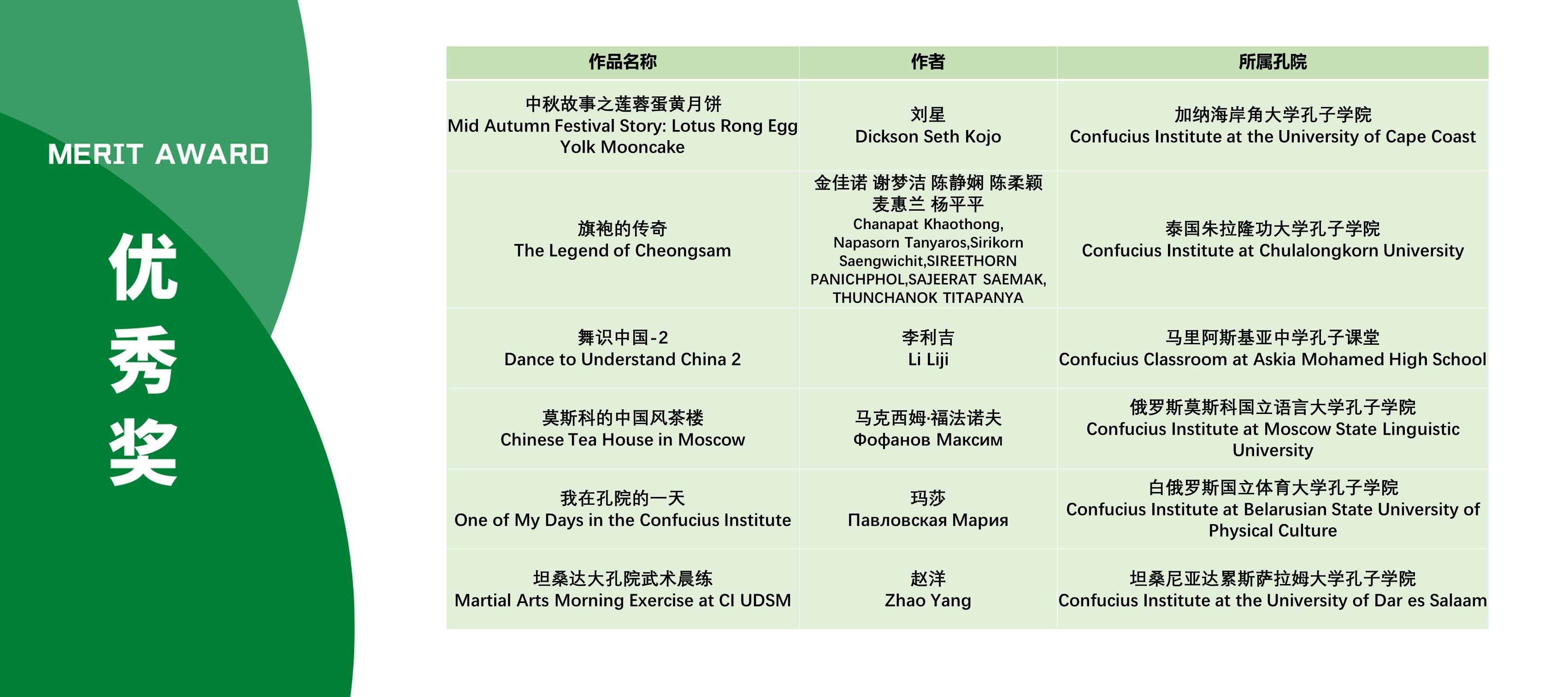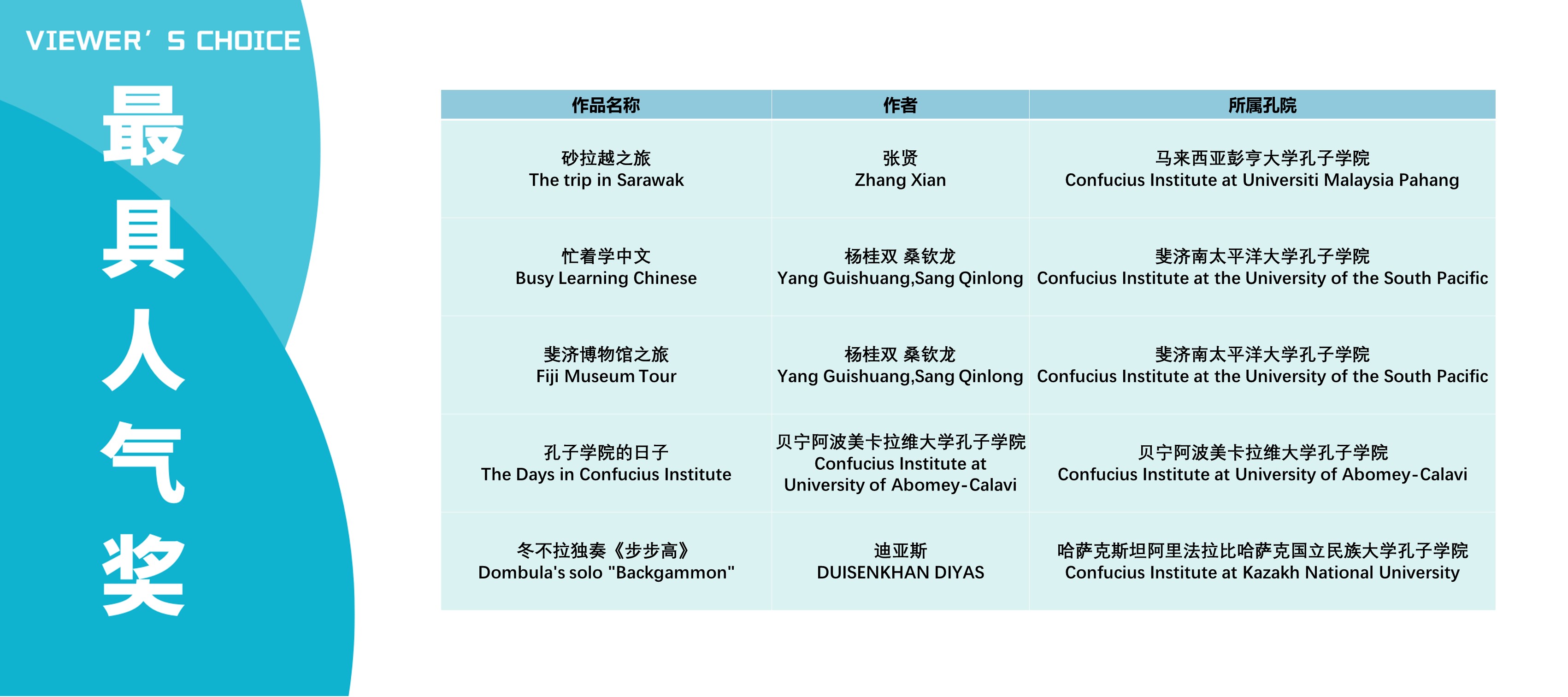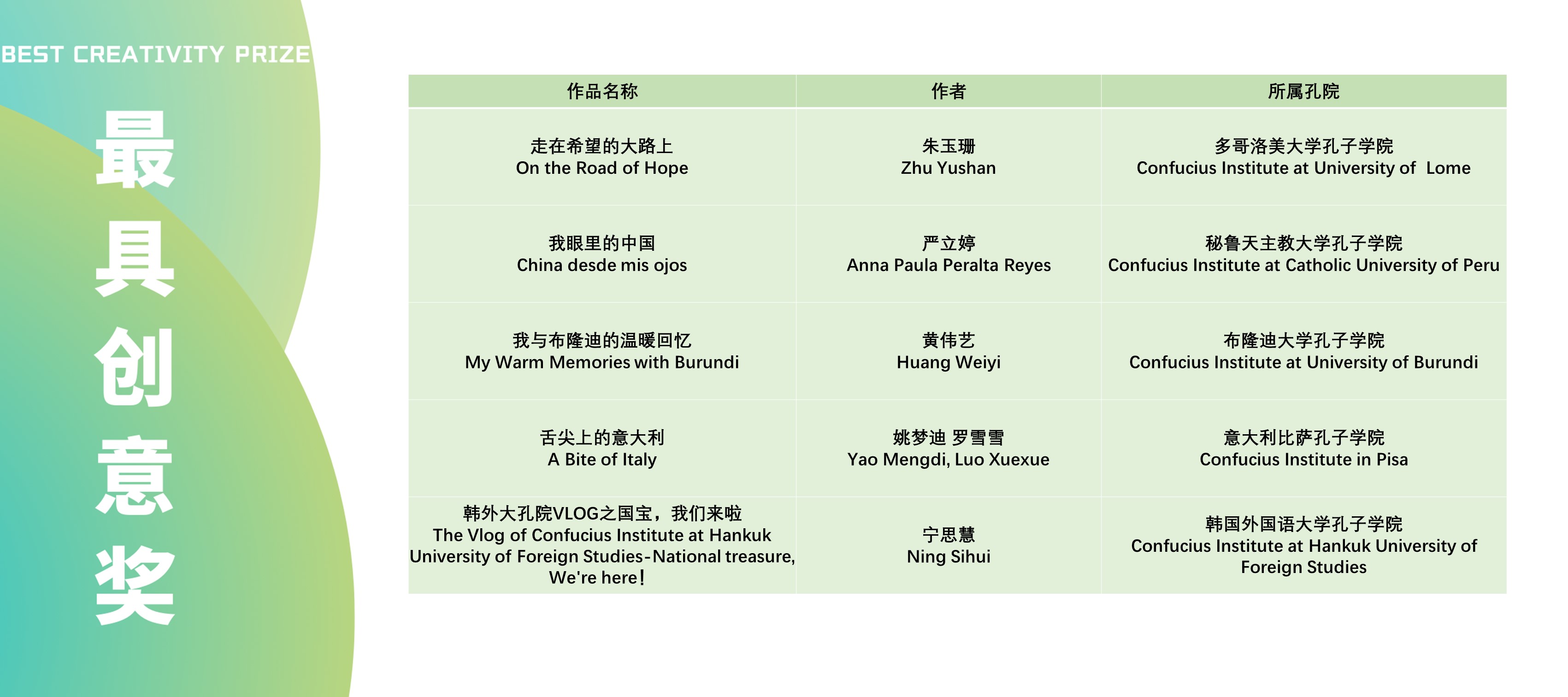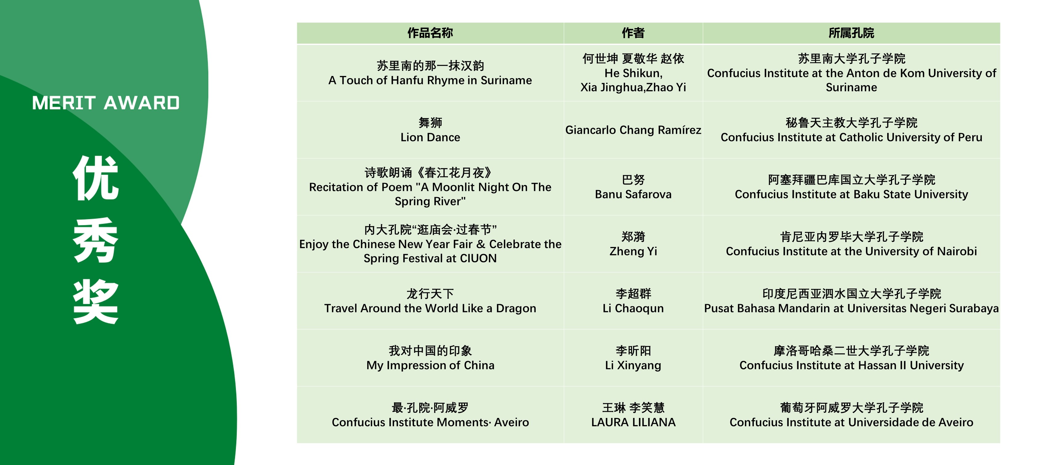 本次活动获奖视频将在孔子学院全球门户网站ci.cn持续展映。祝贺在本次活动中获得优异成绩的孔院人。