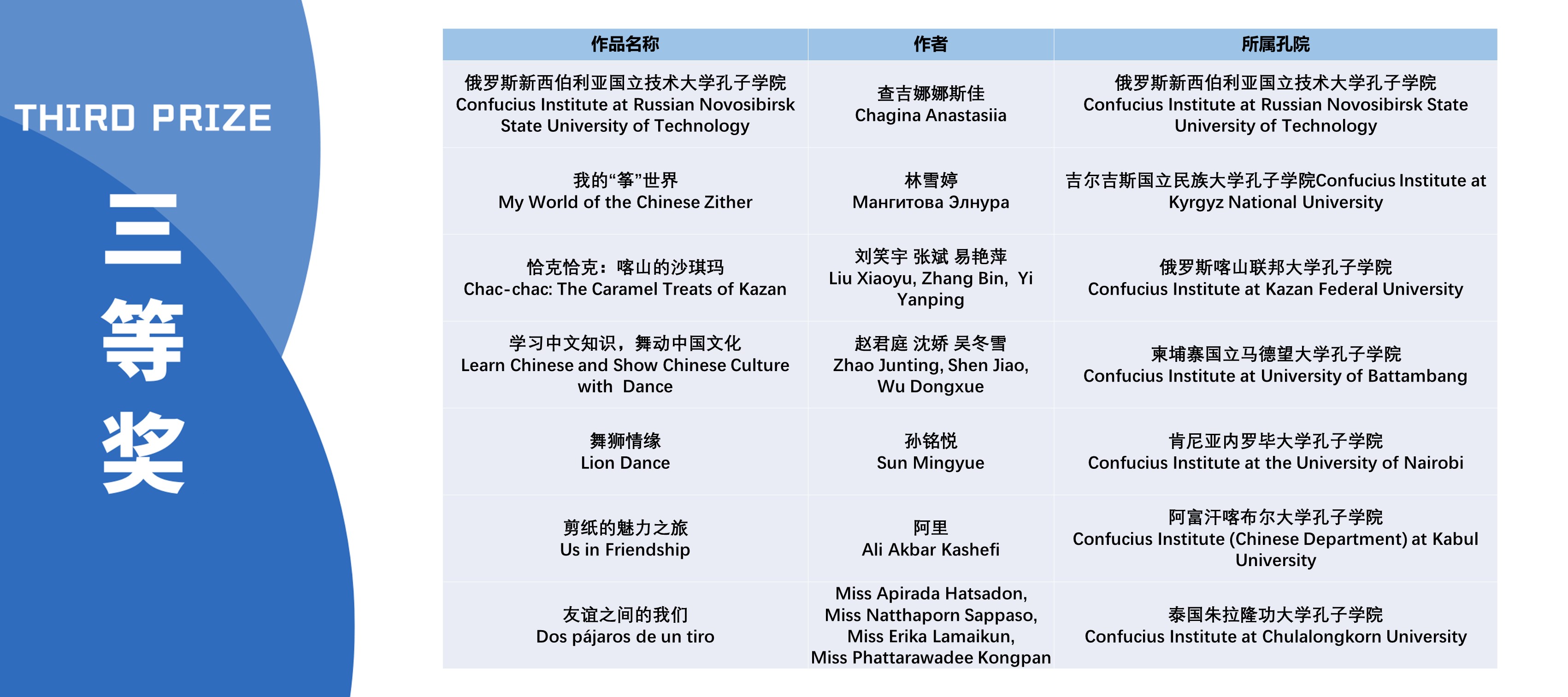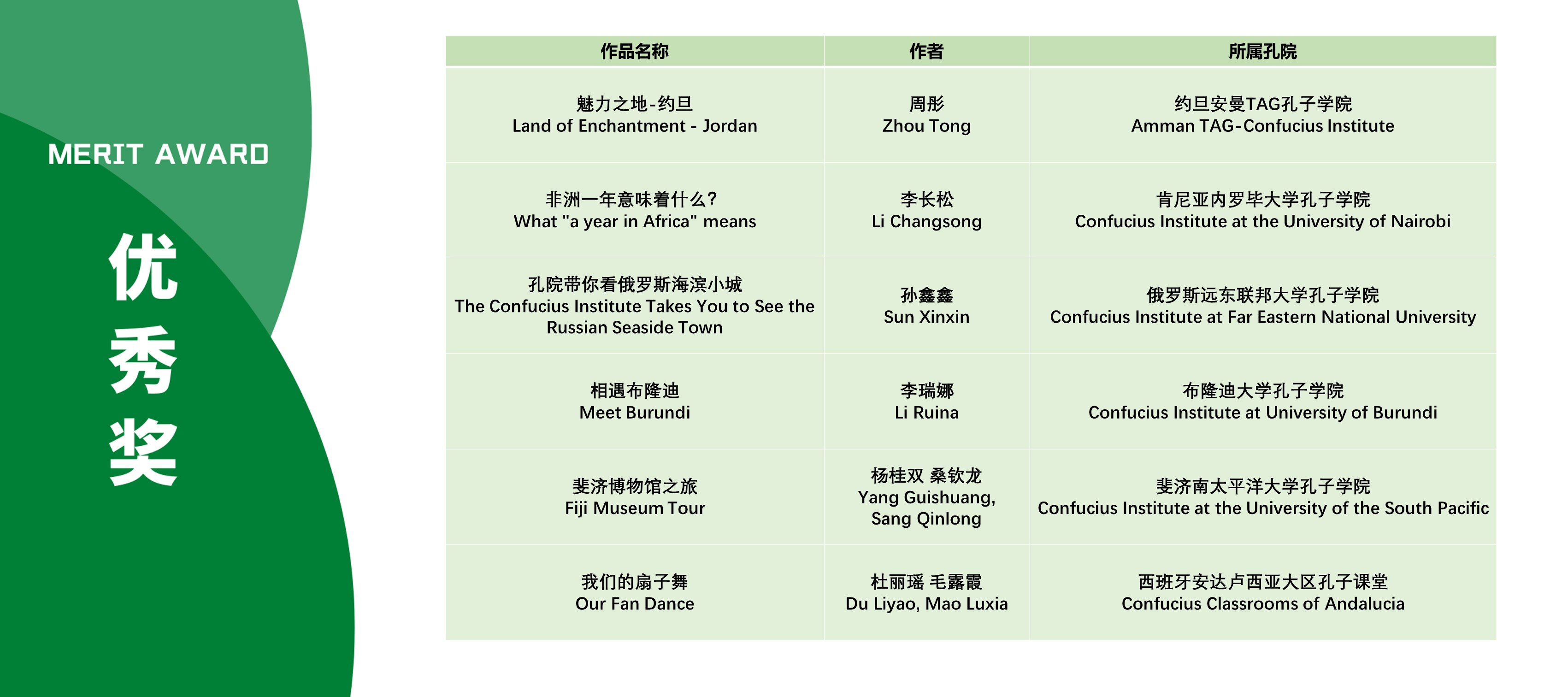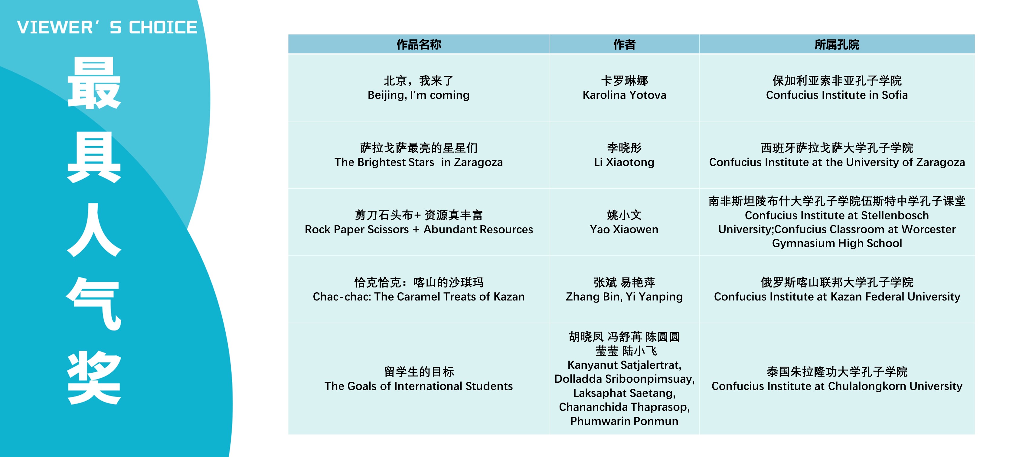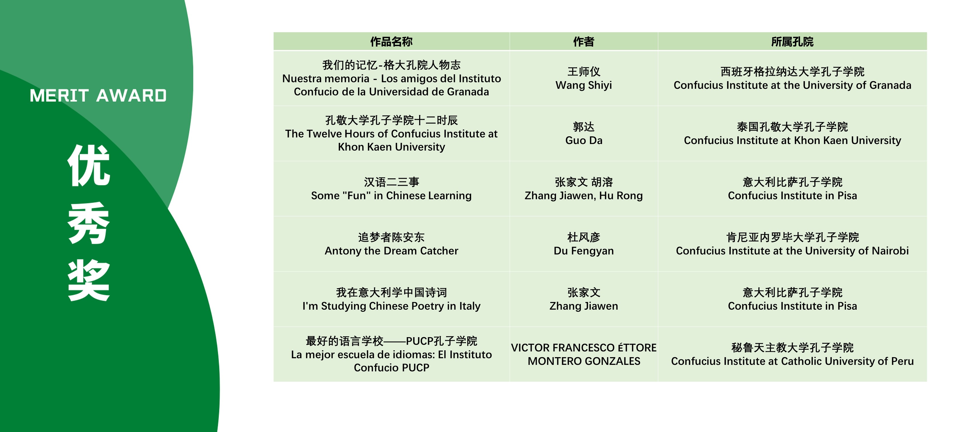 本次活动获奖视频将在孔子学院全球门户网站ci.cn持续展映。祝贺在本次活动中获得优异成绩的孔院人。