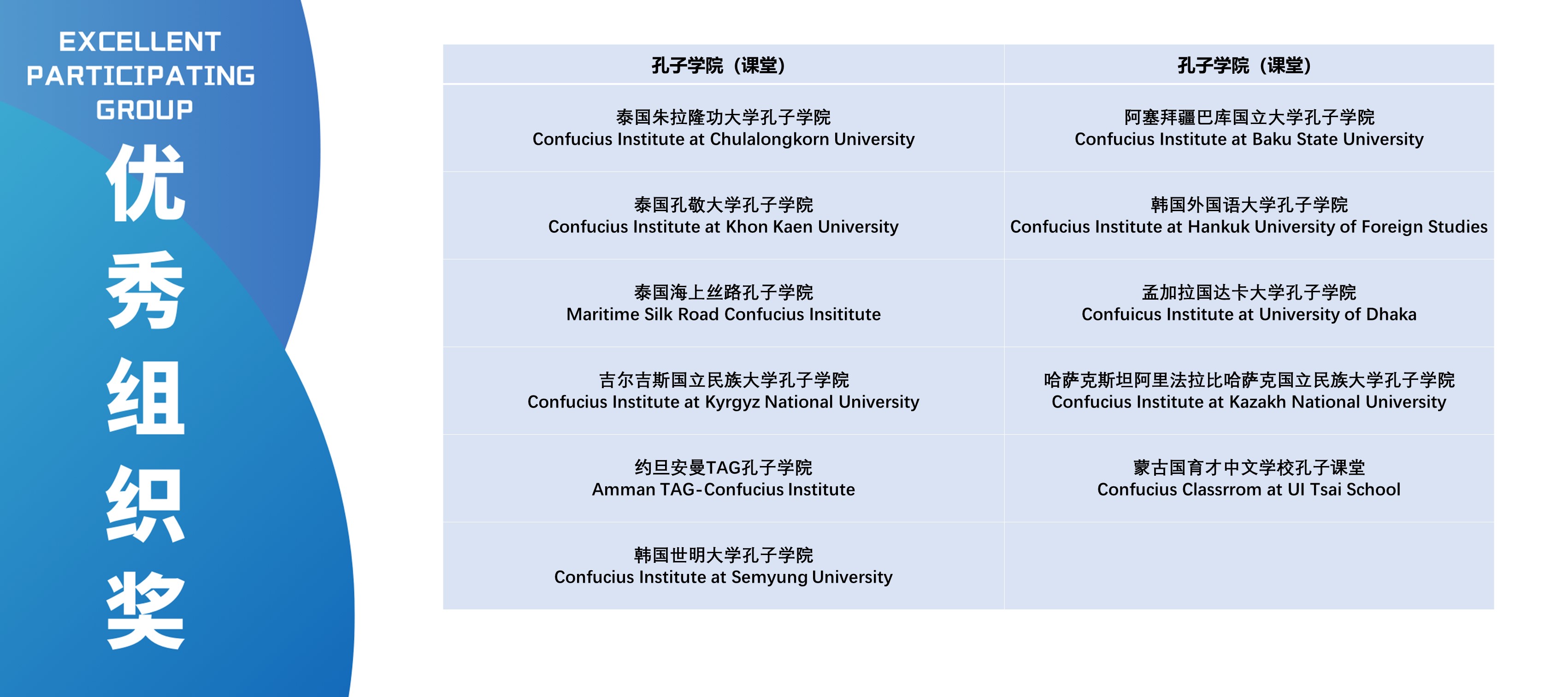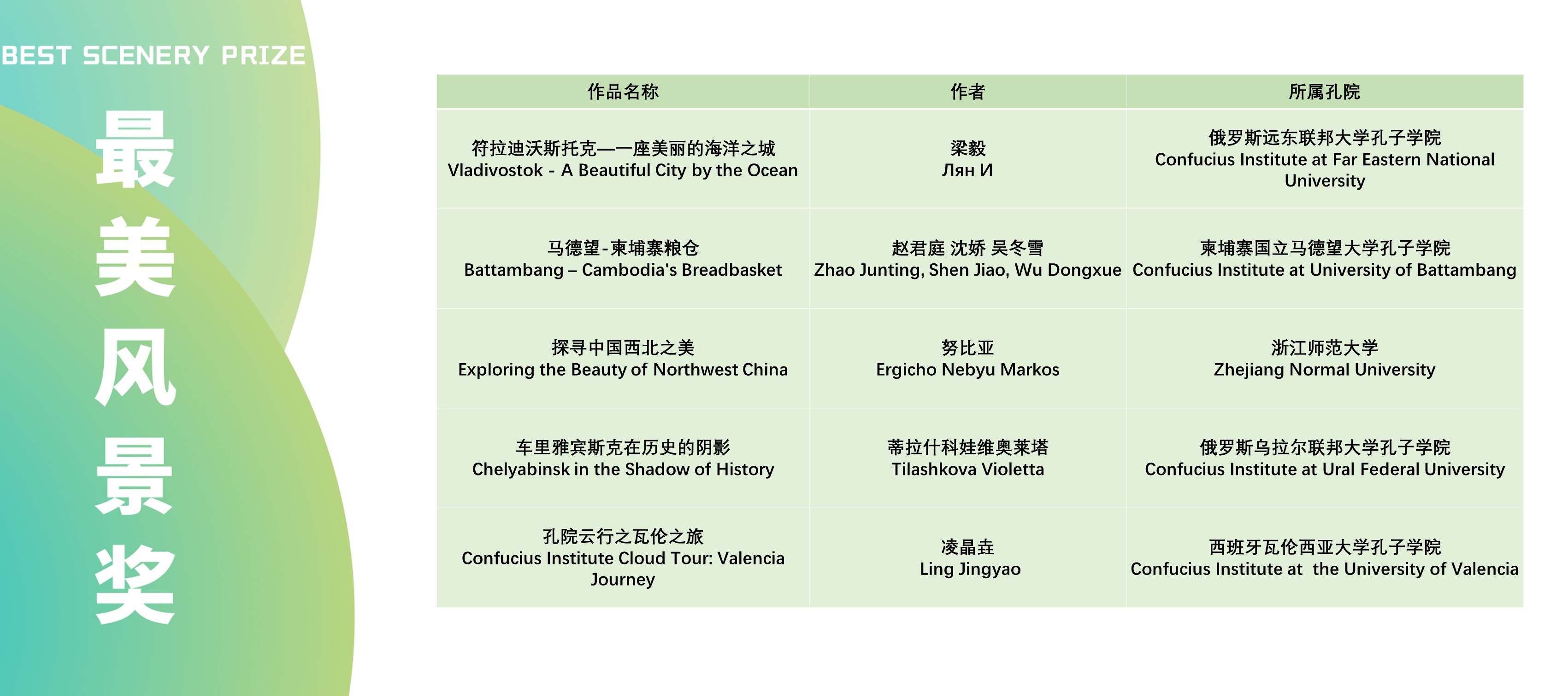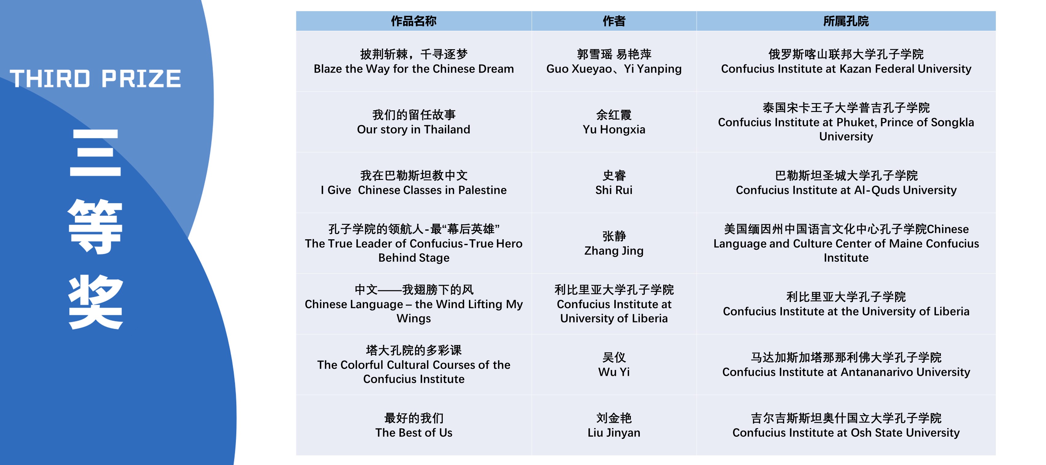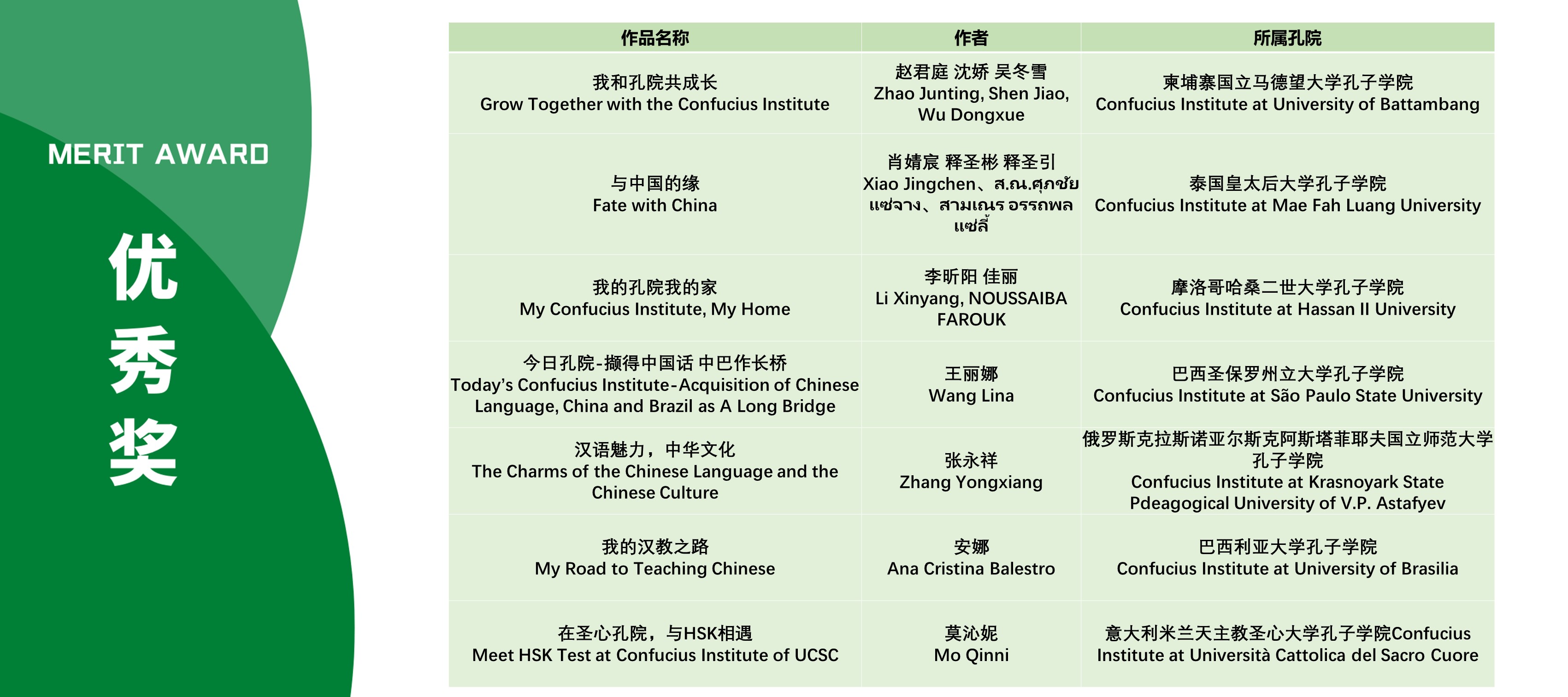 本次活动获奖视频将在孔子学院全球门户网站ci.cn持续展映。祝贺在本次活动中获得优异成绩的孔院人。