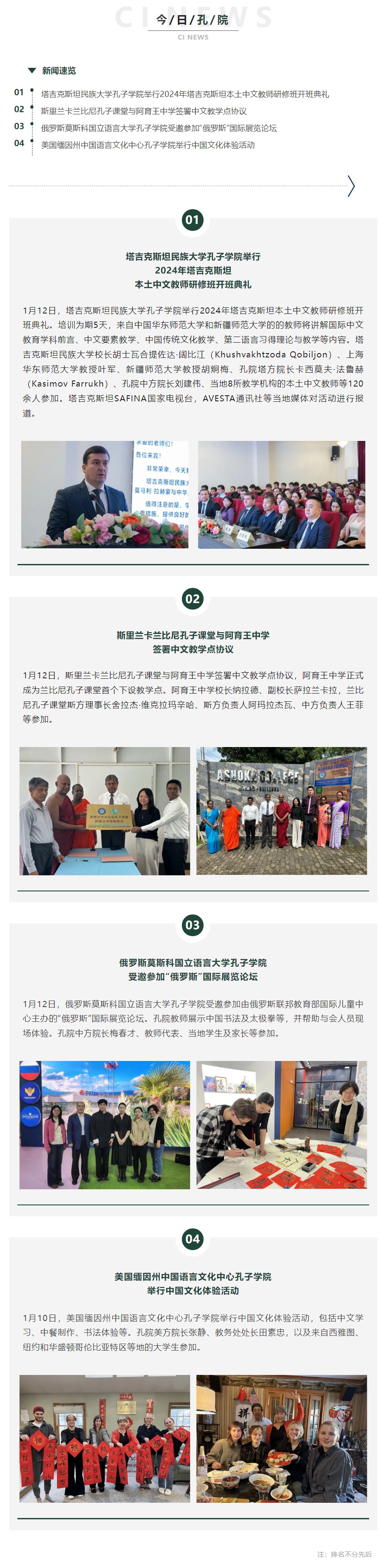 塔吉克斯坦民族大学孔子学院举行2024年塔吉克斯坦本土中文教师研修班开班典礼等4则