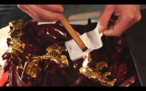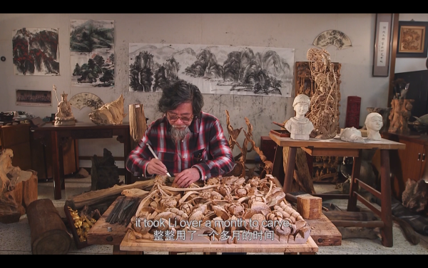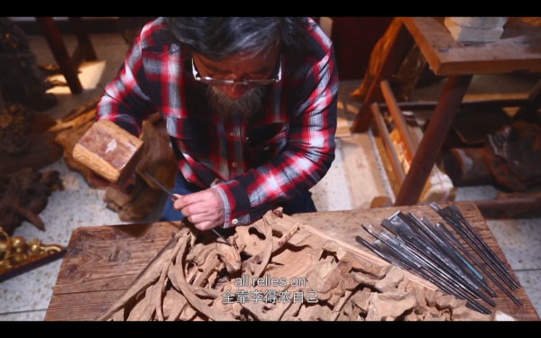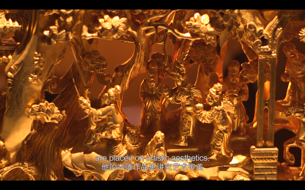 森林是人类繁衍生息的摇篮,树木给人类的先祖提供了生活和生产的馈赠。世界上的五大洲,都有着自己风格的木制品,从实用性的到艺术性的,伴随着人类的发展。 几千年来,中国的木雕艺术,形成了众多的流派,根据不同地域的文化特征,呈现着自己的个性和魅力。李得浓所在的潮州,是座岭南古城,历史可以追溯到秦汉。2000多年的岁月更迭,让这里沉淀着众多古老的文化印记。潮州人功成名就自然要安居乐业,大兴土木翻新祖屋的时候,会用木雕装饰,但是最重要的原因是贴上金箔,那富丽堂皇,正是潮州这传统的人文风情。让木雕就一直伴随着古城发展,也使得木雕技艺代代地传承。 和潮州木雕1000 多年的发展岁月相比,一个人的生命是短暂的,个人的力量也是渺小的,这金碧辉煌的潮州木雕,是无数以木为纸,以刀为笔的木雕艺人,所铭刻的中国文化的传统和智慧。