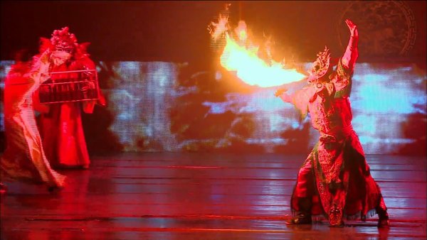 川剧起源于四川省会成都,川剧最早是在街头表演。几百年前,这条街道如同今天一样繁华,中外商贩在这里聚集,用马换取丝绸和茶叶。街头艺人开始表演取材自中国神话和民间传说里的短剧供人们娱乐。这些故事通常具有道德寓意,滚灯讲的就是赌博的危害。滚灯特技是一边头顶着热油灯,一边做各种动作表演。这门绝活将舞蹈、杂技和喜剧小品融为一体。主角是一个有趣的家伙,是个丑角或者说小丑。有一部分的诙谐感来自于他的面部表情,动作看上去柔若无骨 ,非??湔牛苡卸豪值男Ч?。